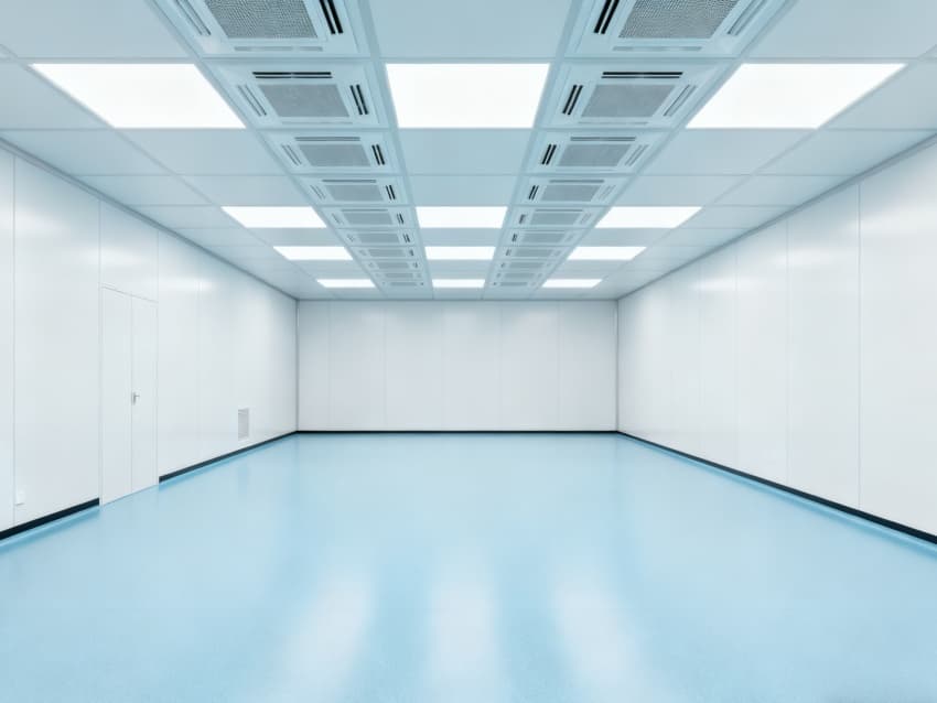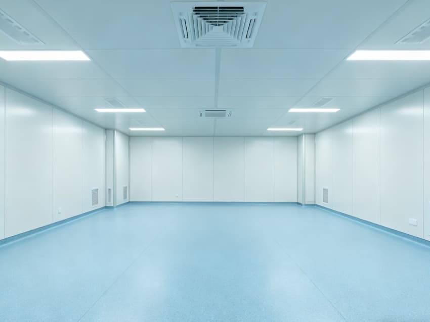 內(nèi)部按功能劃分為六大潔凈區(qū)域:核心潔凈生產(chǎn)區(qū)(淺藍(lán)色防滑防霉地面)預(yù)留開闊空間,滿足發(fā)酵罐、純化設(shè)備等后期安裝;頂部潔凈送風(fēng)區(qū)通過規(guī)整風(fēng)閥系統(tǒng),實(shí)現(xiàn)萬級(jí)潔凈度均勻送風(fēng);墻面過渡區(qū)采用圓弧轉(zhuǎn)角設(shè)計(jì),避免粉塵堆積;密閉觀察區(qū)設(shè)雙層鋼化觀察窗,兼顧生產(chǎn)監(jiān)控與無菌隔離;縱向設(shè)備預(yù)留區(qū)保留8米凈高,適配大型凍干設(shè)備動(dòng)線;輔助緩沖區(qū)銜接車間入口,搭配風(fēng)淋系統(tǒng),實(shí)現(xiàn)人員/物料潔凈過渡。整體空曠布局既保障潔凈操作空間,又滿足皖北生物制藥企業(yè)靈活擴(kuò)產(chǎn)需求,為本地藥企提供合規(guī)、高效的生產(chǎn)載體。