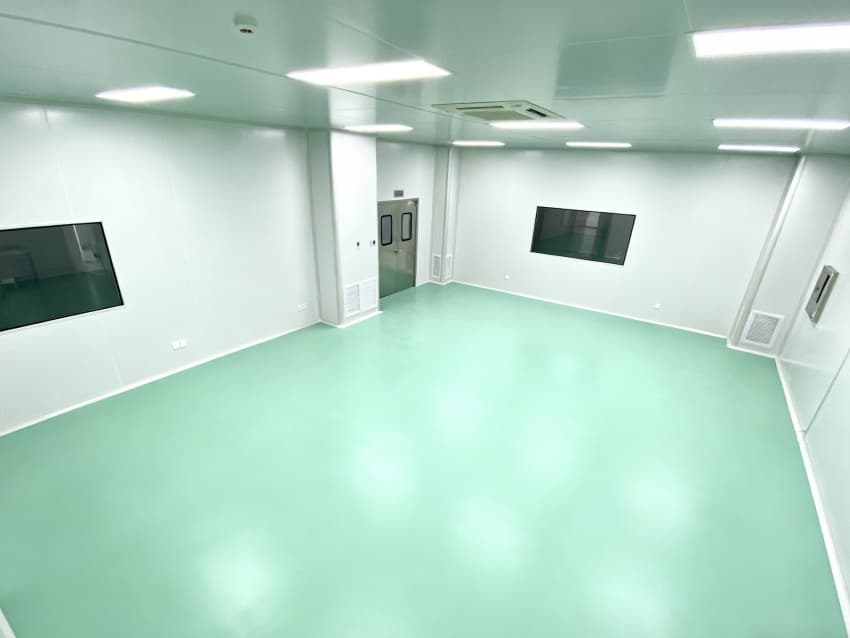 設(shè)計(jì)在環(huán)境防護(hù)上針對(duì)性突出:地面采用淺綠色防靜電環(huán)氧材質(zhì),表面電阻值控制在10^6-10^9Ω,有效規(guī)避靜電對(duì)電子零件的損傷;四周白色防塵墻壁經(jīng)啞光處理,減少光線反射干擾,配合頂部高效空氣過(guò)濾器(HEPA),可穩(wěn)定維持千級(jí)潔凈度,隔絕粉塵、微粒對(duì)精密組裝的影響。?