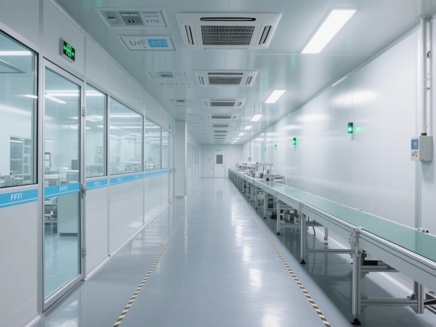生產線配備全自動晶圓傳送機械臂、激光焊接設備,透明防塵罩與實時粒子計數器確保工藝穩(wěn)定性。走廊設置防靜電地板與人員凈化通道,風淋時間嚴格控制在30秒,全方位滿足微電子元件的超高潔凈生產需求。