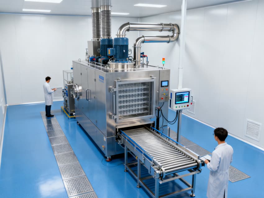 核心生產(chǎn)車間參數(shù)差異化設(shè)計(jì):原料處理車間為10萬級潔凈區(qū),配備初、中、高效三級過濾系統(tǒng),高效過濾器效率≥99.99%,送風(fēng)量2000m³/h;試劑配制車間達(dá)萬級潔凈標(biāo)準(zhǔn),采用頂送風(fēng)、側(cè)回風(fēng)模式,單向流風(fēng)速0.3-0.5m/s,溫濕度控制精度±2℃、±5%RH;無菌分裝車間為百級潔凈區(qū),配置層流罩,潔凈度≥0.5μm塵粒≤350個/m³,微生物≤1個/皿。