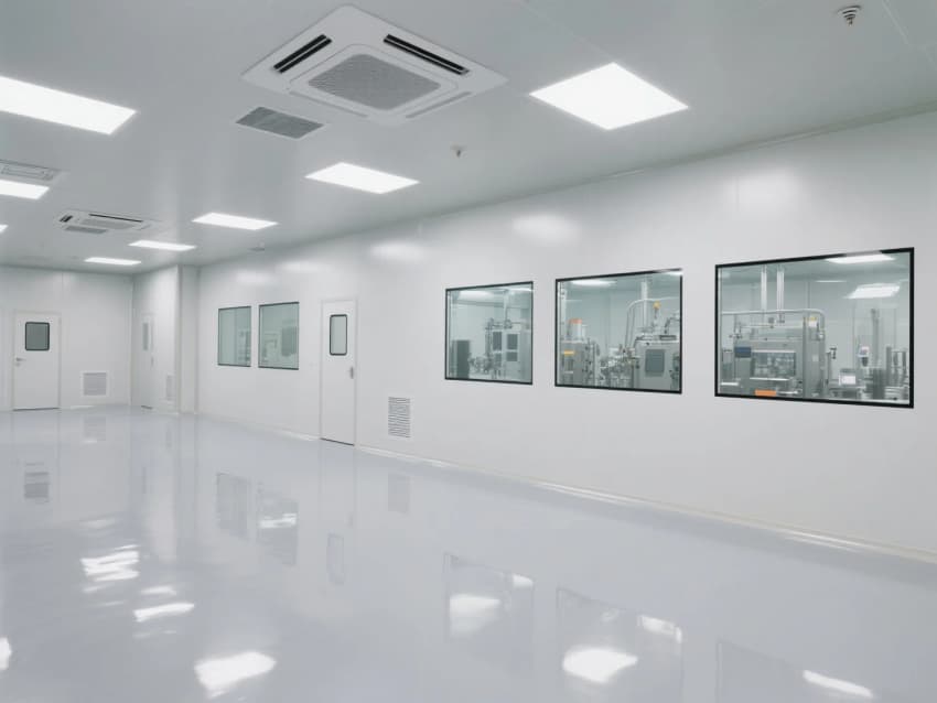 本工程嚴(yán)格依據(jù)ISO14644-1Class7潔凈標(biāo)準(zhǔn),采用"工業(yè)4.0"設(shè)計(jì)理念,打造智能化電子光伏生產(chǎn)環(huán)境。主體結(jié)構(gòu)采用模塊化潔凈室系統(tǒng),50mm厚深灰抗菌彩鋼板墻體與淺灰防靜電環(huán)氧自流平地坪形成未來(lái)工業(yè)美學(xué)基調(diào),表面電阻穩(wěn)定控制在10^6-10^9Ω范圍。