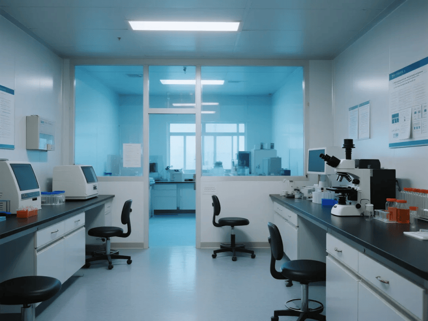 本實(shí)驗(yàn)室以"科技藍(lán)調(diào)"為設(shè)計(jì)主題,嚴(yán)格遵循生物安全二級(jí)(BSL-2)及ISO14644-1標(biāo)準(zhǔn),打造兼具專業(yè)性與美學(xué)體驗(yàn)的分子生物學(xué)研究空間。整體采用深海藍(lán)與鈦白灰的色彩組合,營造冷靜而富有科技感的實(shí)驗(yàn)環(huán)境。