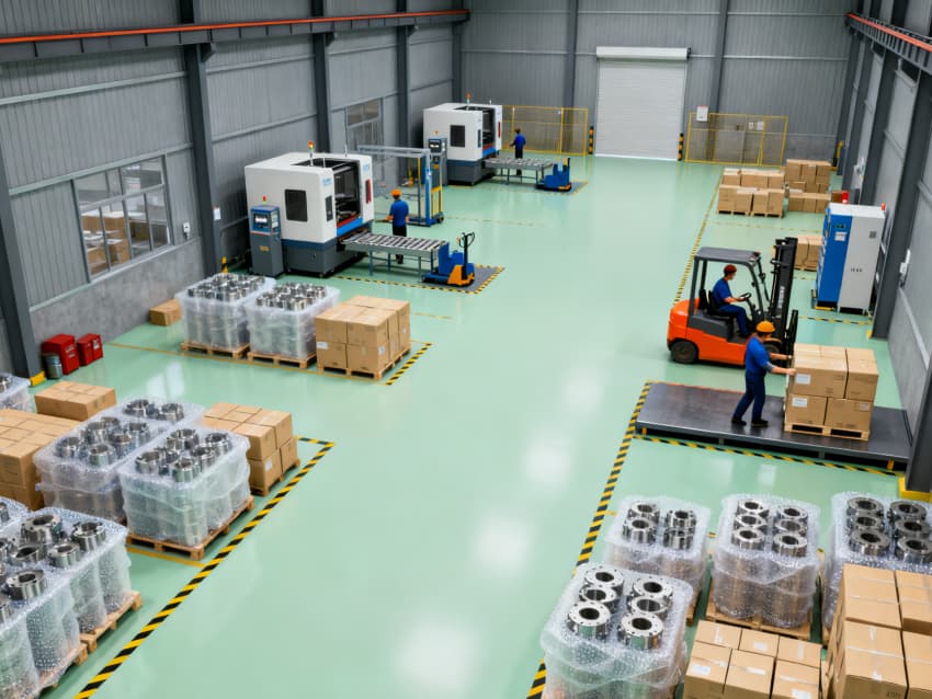 全車間統(tǒng)一預(yù)留標(biāo)準(zhǔn)化電源接口、壓縮空氣管路及 coolant 回收通道,層高5米適配各類大型CNC設(shè)備安裝調(diào)試。地面隱形標(biāo)識清晰劃分加工區(qū)、通道區(qū)及安全區(qū)域,墻面張貼設(shè)備操作規(guī)范預(yù)留位。整體設(shè)計兼顧實用性與安全性,為精密CNC加工提供穩(wěn)定、高效的生產(chǎn)環(huán)境,助力保障零件加工精度與生產(chǎn)效率。