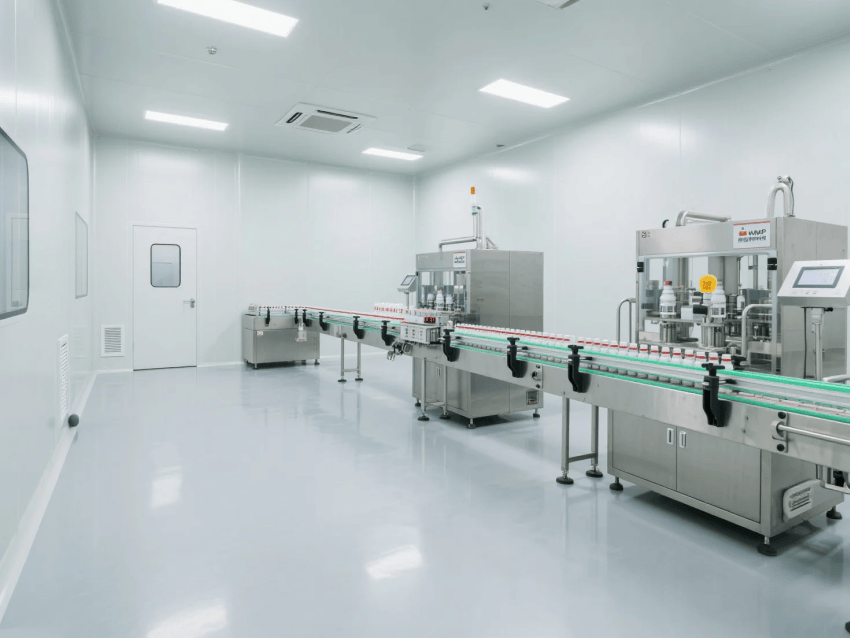 本工程嚴(yán)格遵循GMP及ISO14644-1Class8標(biāo)準(zhǔn),專為無(wú)菌制劑灌裝生產(chǎn)打造高標(biāo)準(zhǔn)潔凈環(huán)境。整體采用醫(yī)療級(jí)白色抗菌彩鋼板與淺灰環(huán)氧自流平地坪的潔凈配色方案,營(yíng)造