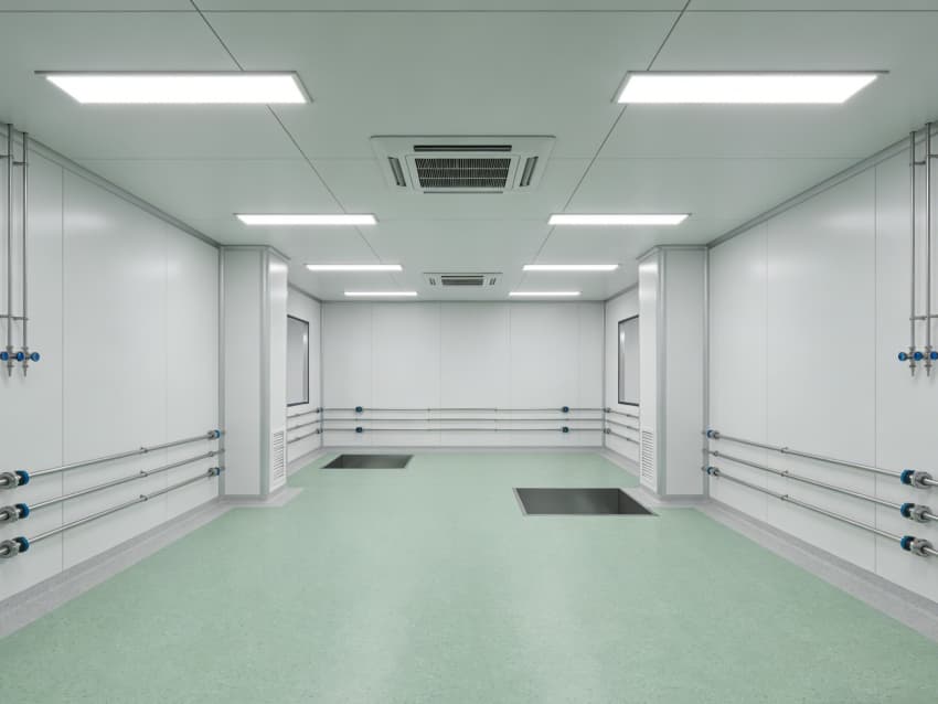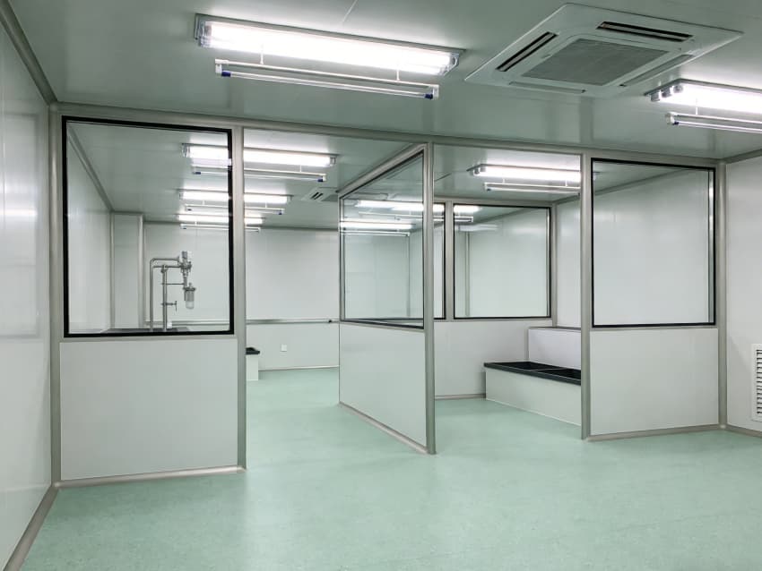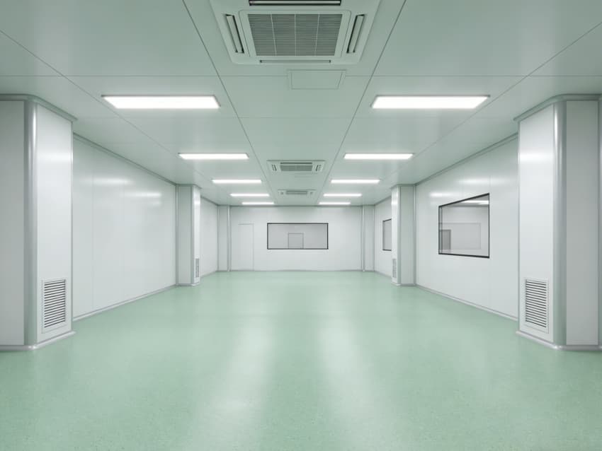 車間內部施工工藝凸顯專業(yè)優(yōu)勢:地面采用淺綠色環(huán)氧自流平施工工藝,經(jīng)基層打磨、界面處理、環(huán)氧砂漿找平、自流平罩面四道工序,表面平整度誤差≤1mm/m,兼具抗菌、抗化學腐蝕特性;墻面采用白色潔凈抗菌涂層施工,推行無縫拼接工藝,陰陽角采用圓弧倒角處理,杜絕清潔死角,涂層附著力達1.5MPa以上,滿足頻繁消殺需求。
