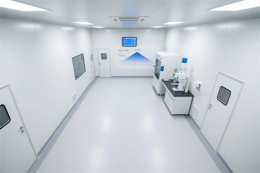 本工程嚴(yán)格依據(jù)ISO14644-1Class6(千級(jí))潔凈標(biāo)準(zhǔn)及GMP規(guī)范要求,采用"科技極簡"設(shè)計(jì)理念,打造高標(biāo)準(zhǔn)的微生物檢測環(huán)境。主體結(jié)構(gòu)采用模塊化潔凈室系統(tǒng),50mm厚純白醫(yī)
