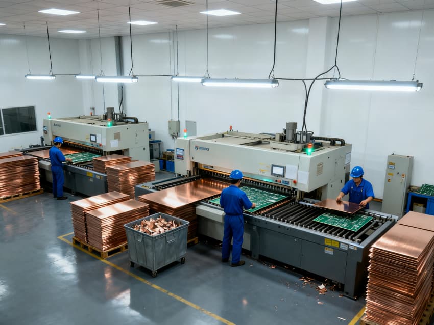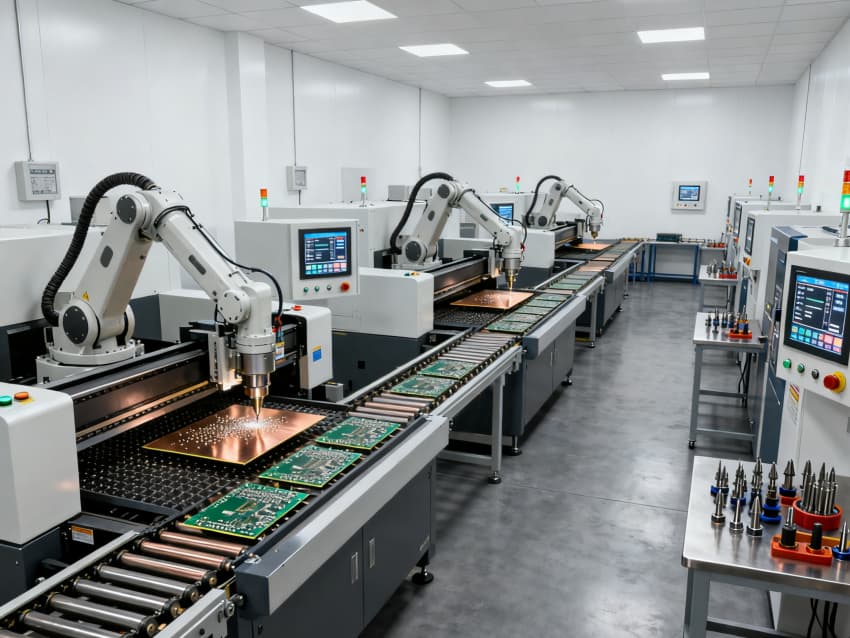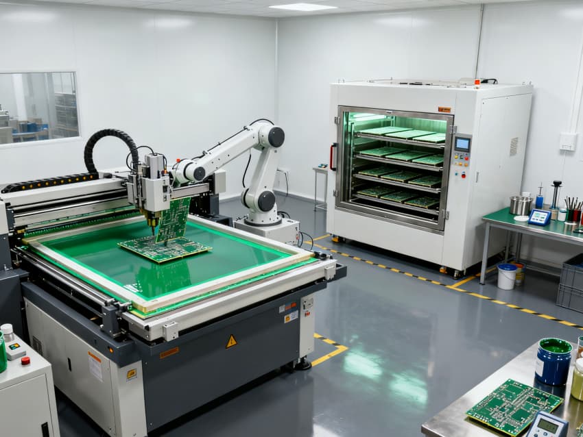 各車間功能定位清晰,適配全生產(chǎn)鏈路:基板裁切車間預(yù)留大型裁切設(shè)備安裝位,空間開(kāi)闊便于物料轉(zhuǎn)運(yùn);光刻車間采用密閉式布局,預(yù)留恒溫恒濕及避光系統(tǒng)接口;蝕刻車間強(qiáng)化通風(fēng)管道預(yù)留,適配酸堿試劑使用需求;鉆孔車間預(yù)留高精度鉆孔機(jī)安裝基礎(chǔ),地面做防震處理;阻焊車間側(cè)重潔凈防護(hù),預(yù)留噴涂設(shè)備工位;成型車間規(guī)劃物料緩存區(qū)與成品檢測(cè)區(qū);測(cè)試車間預(yù)留各類檢測(cè)儀器接口;包裝車間劃分潔凈包裝區(qū)與周轉(zhuǎn)區(qū)。