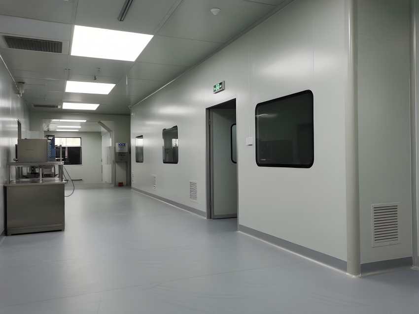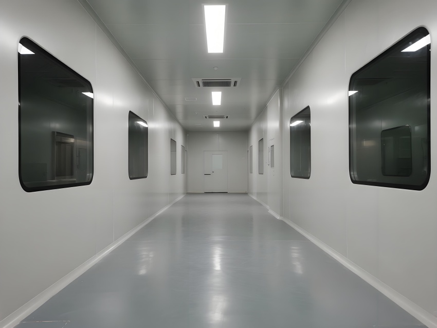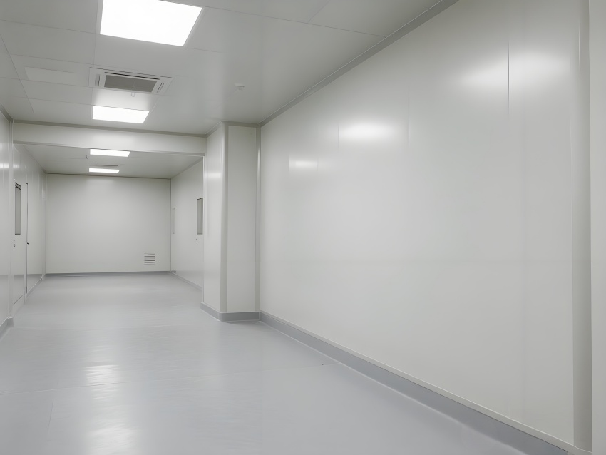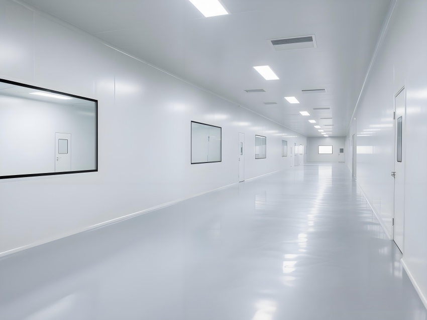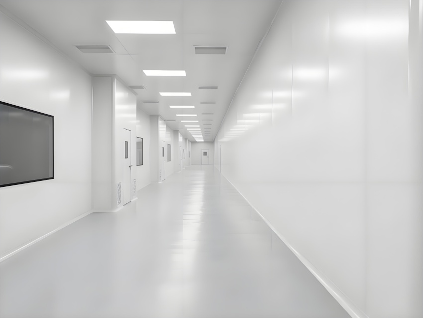 本凈化車間采用"科技極簡主義"風(fēng)格,通過流暢的線性布局與模塊化設(shè)計強(qiáng)化專業(yè)感。主空間以珍珠白與淺灰為基調(diào),搭配天藍(lán)色送風(fēng)管道形成視覺引導(dǎo),環(huán)氧地坪的鏡面效果反射頂部藍(lán)色凈化燈帶,營造無菌環(huán)境的通透感。設(shè)備區(qū)采用不銹鋼原色與玻璃觀察窗形成材質(zhì)碰撞,電子屏實時數(shù)據(jù)可視化增強(qiáng)科技屬性。嚴(yán)格的人貨分流設(shè)計通過色彩編碼實現(xiàn)功能識別,墻面嵌入式消防與應(yīng)急系統(tǒng)保持視覺平整。整體空間通過減少視覺噪點、強(qiáng)化功能分區(qū)線條,在滿足GMP動態(tài)潔凈要求的同時,呈現(xiàn)現(xiàn)代食品工業(yè)的精密與秩序之美,透明亞克力標(biāo)識牌與柔光照明進(jìn)一步減輕密閉空間的壓抑感。