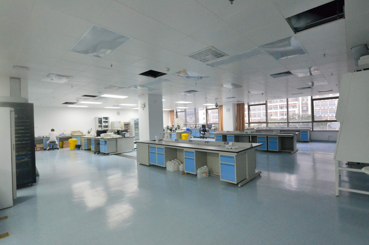 2、實驗臺面材質(zhì)主要由實芯理化板、環(huán)氧樹脂板和千思板,因檢驗科實驗室使用的高溫設備不多,推薦使用實芯理化板臺面和千思板臺面。