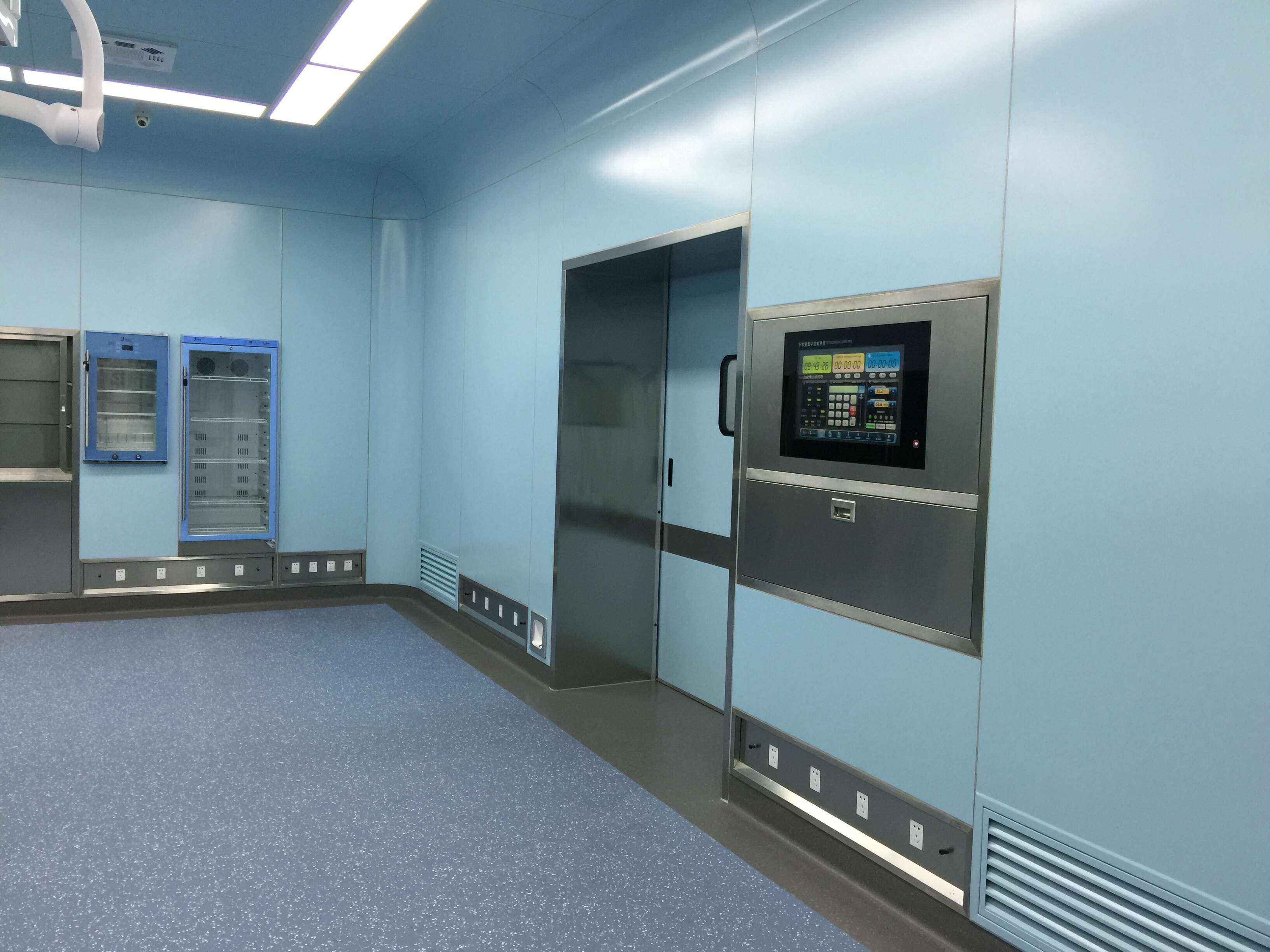 醫(yī)療整形美容院層流手術(shù)室三間,其中一間千級手術(shù)室凈化系統(tǒng),兩間萬級潔凈手術(shù)室,層流手術(shù)室建筑施工面積260㎡(含相應(yīng)輔助用房功能間,輔助用房為十萬級凈化),板材采用藍(lán)色玻鎂潔凈板,地面搭配進(jìn)口PVC,具有抗碘伏、耐磨、防滑、易清洗功能;凈化機(jī)組采用領(lǐng)先技術(shù)的醫(yī)凈恒溫恒濕空調(diào),搭配PLC控制系統(tǒng)、高端觸摸屏控制器,具有自動(dòng)加濕除濕、自動(dòng)調(diào)節(jié)溫度、故障報(bào)警功能;已取得第三方檢測公司的檢測報(bào)告;手術(shù)室潔凈走廊,搭配藍(lán)色潔凈板與進(jìn)口品質(zhì)pvc地板;墻體安裝不銹鋼防撞帶,有效保障了推手術(shù)病人的過程中發(fā)生的墻體擦掛;醫(yī)用自動(dòng)門定制同色,配備光感應(yīng)防夾功能、內(nèi)外腳踏感應(yīng)功能,電機(jī)采用進(jìn)口機(jī)芯,啟動(dòng)聲音低。